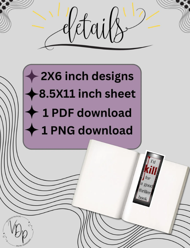 Enhance your reading experience with this Thriller and Psychological Thriller themed printable bookmark. Designed for book lovers, this stylish bookmark helps you keep track of your page while adding a unique touch to your favorite books.